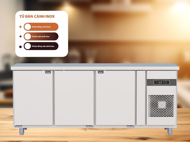 | Tên sản phẩm | Tủ bàn đông quạt gió 3 cánh mở inox 1800x750x850 mm |