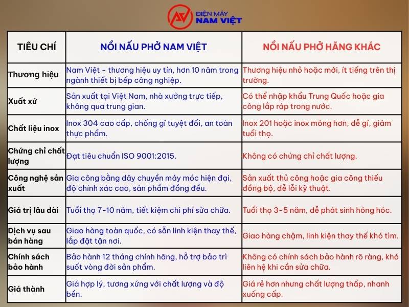 - 4 So sánh nồi nấu phở thương hiệu Nam Việt với một số thương hiệu giá rẻ khác trên thị trường
