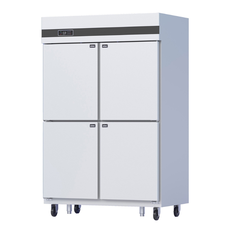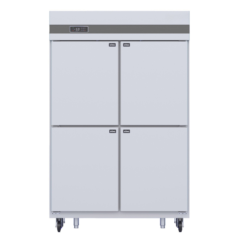 Tủ đông công nghiệp 4 cánh inox 1100L với không gian chứa thực phẩm lớn là lựa chọn hoàn hảo cho nhiều mô hình kinh doanh. Tủ bảo quản chế độ đông, không đóng tuyết thiết kế cửa đứng giúp người sử dụng dễ dàng và sắp xếp thực phẩm một cách khoa học.